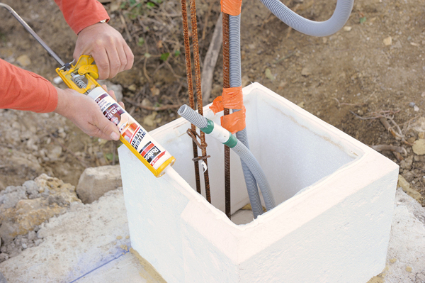 Déposez sur le module en place un cordon de mastic acrylique. Il évitera les coulées de béton entre les modules.